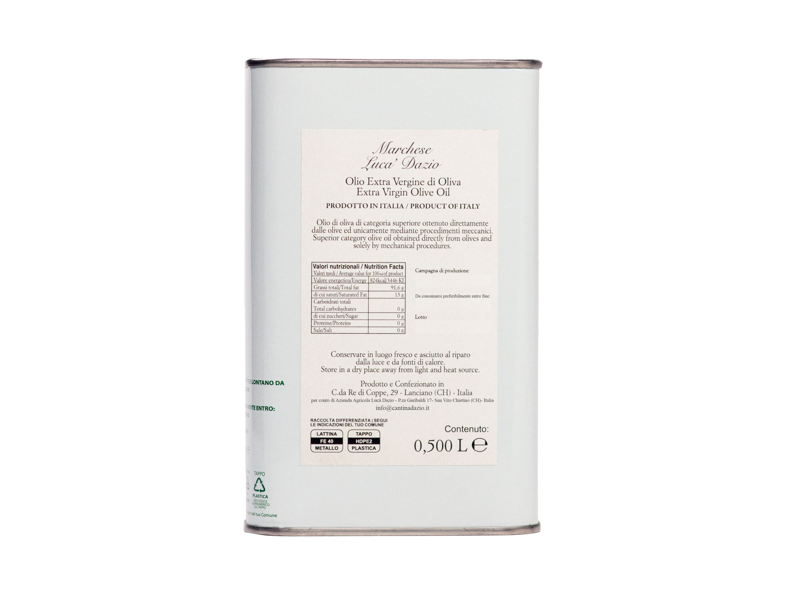 Olio extra vergine di oliva – Latta da 0,500 L